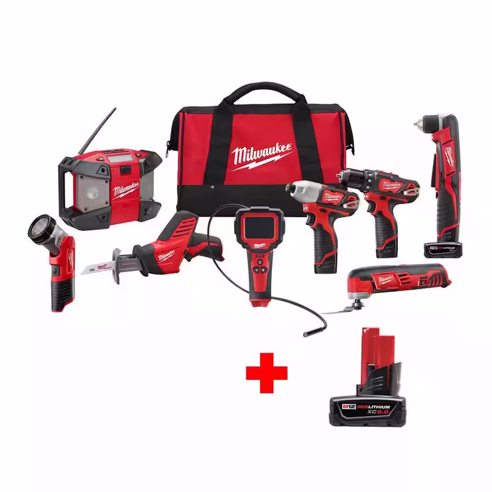 Milwaukee M12 12V Lithium-Ion Cordless Combo Tool Kit (8-Tool) with 6.0 Ah Battery