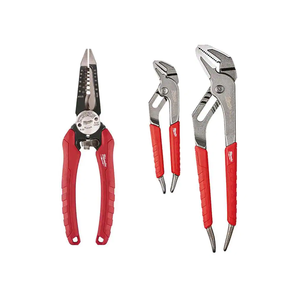 Milwaukee 7.75 in. Combination Electricians 6-in-1 Wire Strippers Pliers and 6 in. and 10 in. Straight-Jaw Pliers Set (3-Piece)
