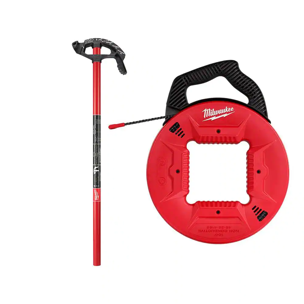 Milwaukee 100 ft. Polyester Fish Tape with Non-Conductive Tip with 1/8 in. x 120 ft. Steel Fish Tape