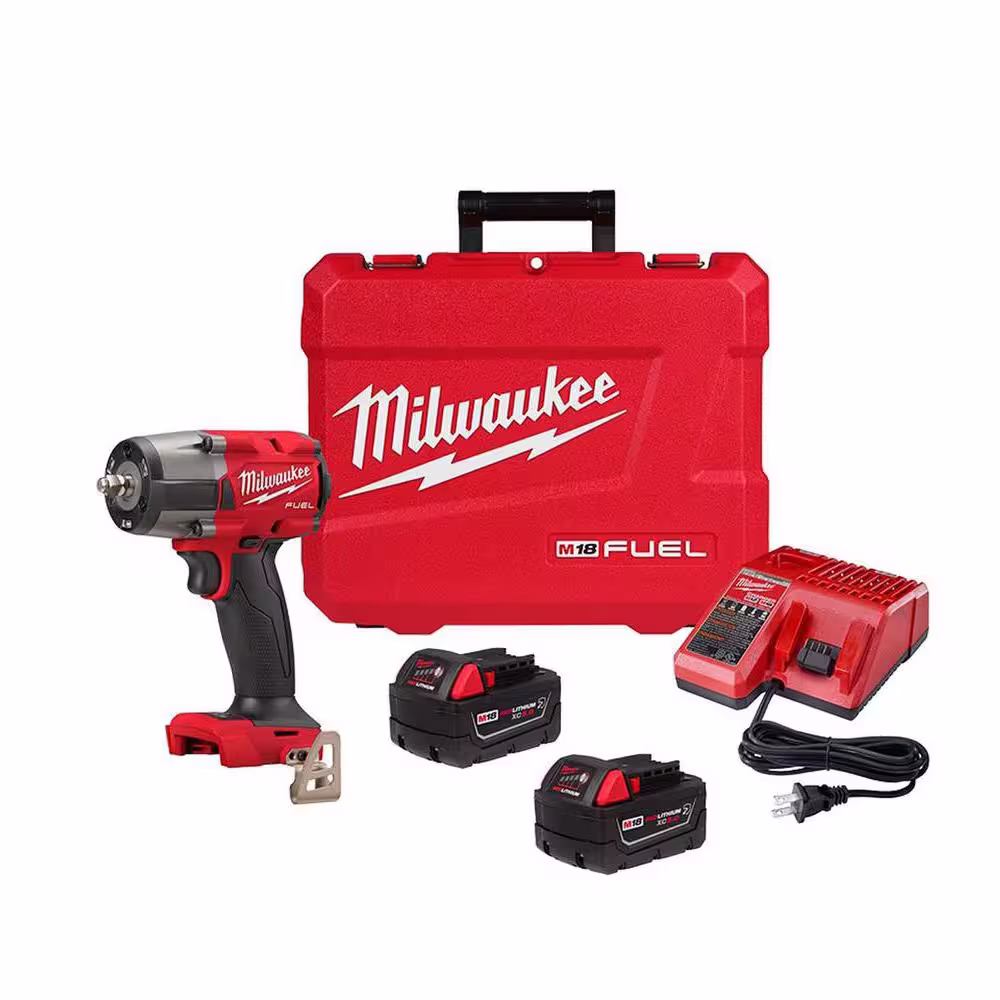 Milwaukee M18 FUEL 18V Lithium-Ion Brushless Cordless 1/2 in. Mid-Torque Impact Wrench with Friction Ring Kit, Resistant Batteries