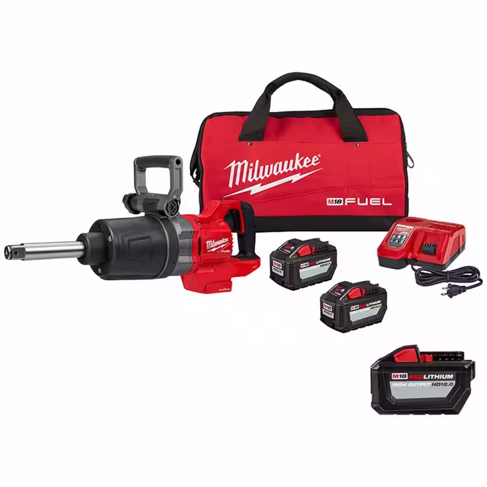 Milwaukee M18 FUEL 18V Lithium-Ion Brushless Cordless 1 in. Impact Wrench Extended Reach D-Handle Kit w/(3) 12.0 Ah Batteries