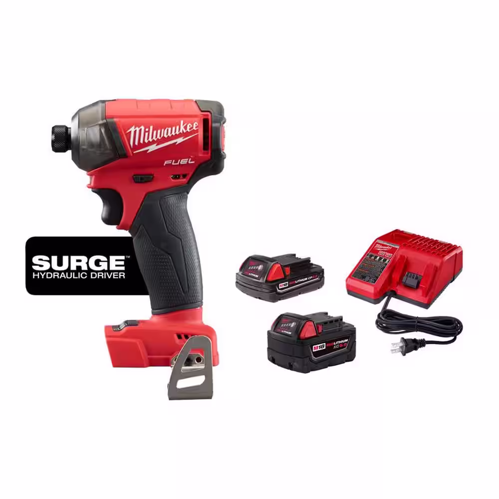 Milwaukee M18 FUEL SURGE 18V Lithium-Ion Brushless Cordless 1/4 in. Hex Impact Driver w/One 5.0Ah and One 2.0Ah Battery Charger