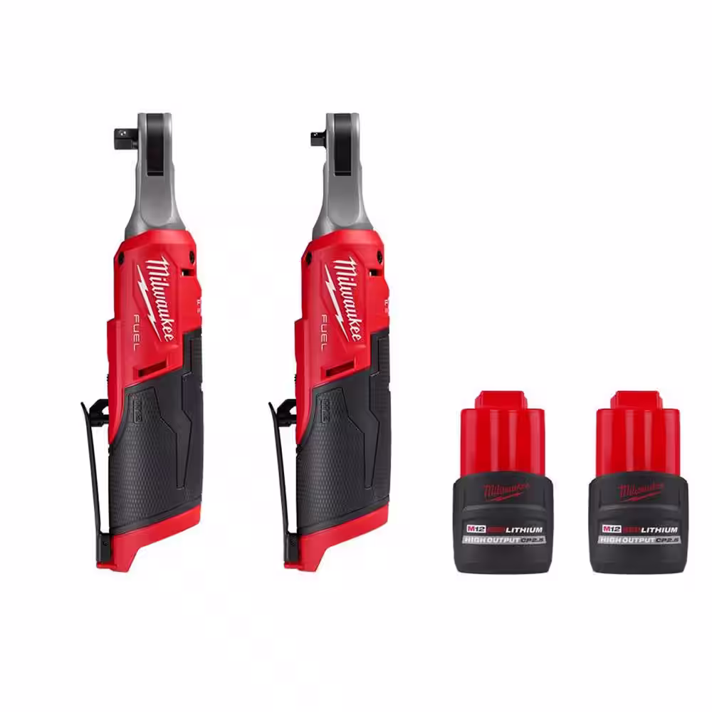 Milwaukee M12 FUEL 12-Volt Lithium-Ion Brushless Cordless High Speed 3/8 in. & 1/4 in. Ratchets w/(2) M12 CP 2.5 Ah Batteries