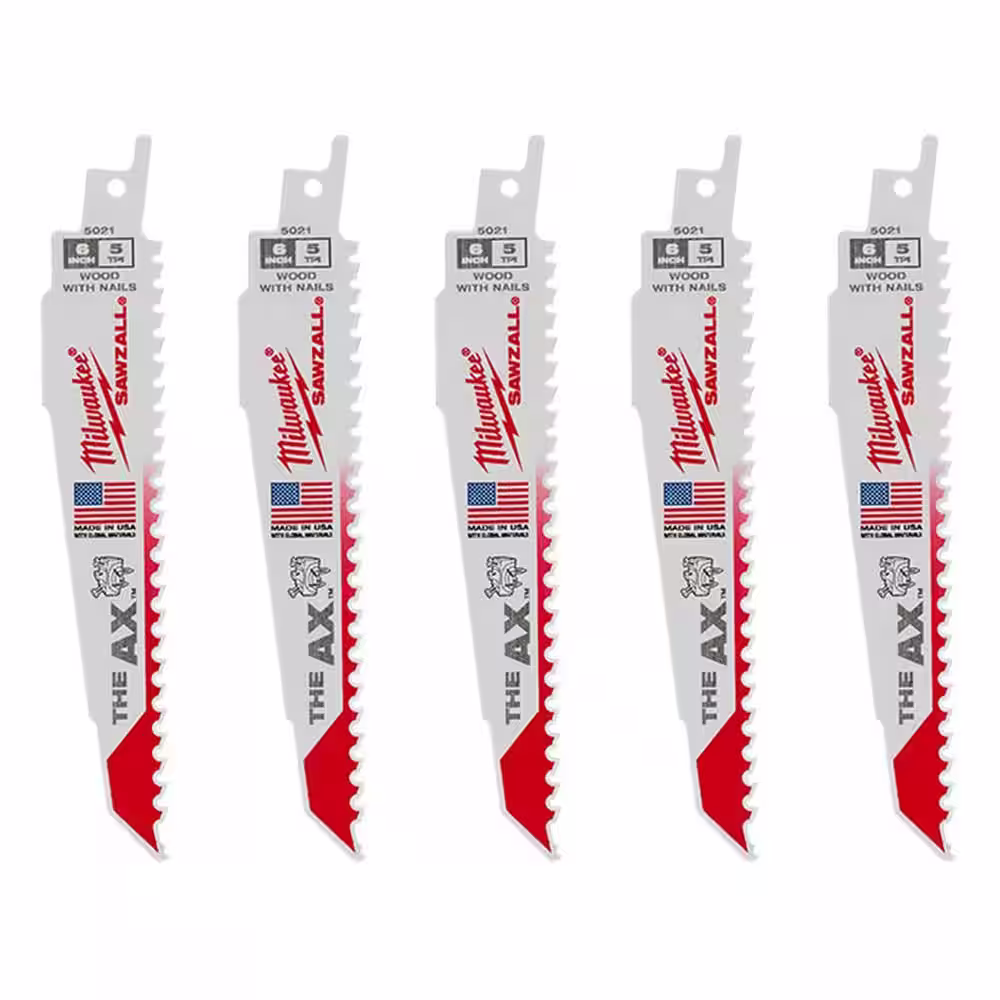 Milwaukee 6 in. 5 TPI AX Nail-Embedded Wood Cutting SAWZALL Reciprocating Saw Blades (5-Pack)