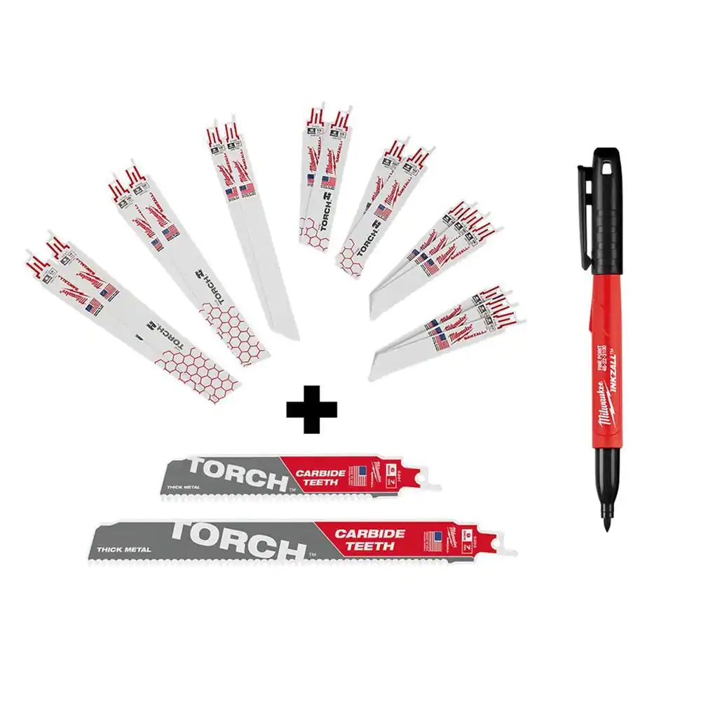 Milwaukee SAWZALL Metal Cutting BiMetal Reciprocating Saw Blade Set (16-Piece) with 2 Carbide Blades Plus 1 Inkzall Marker