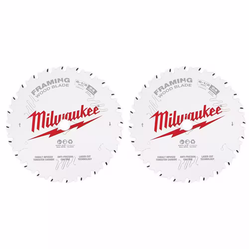 Milwaukee 6-1/2 in. x 24-Tooth Framing Circular Saw Blade (2-Pack)
