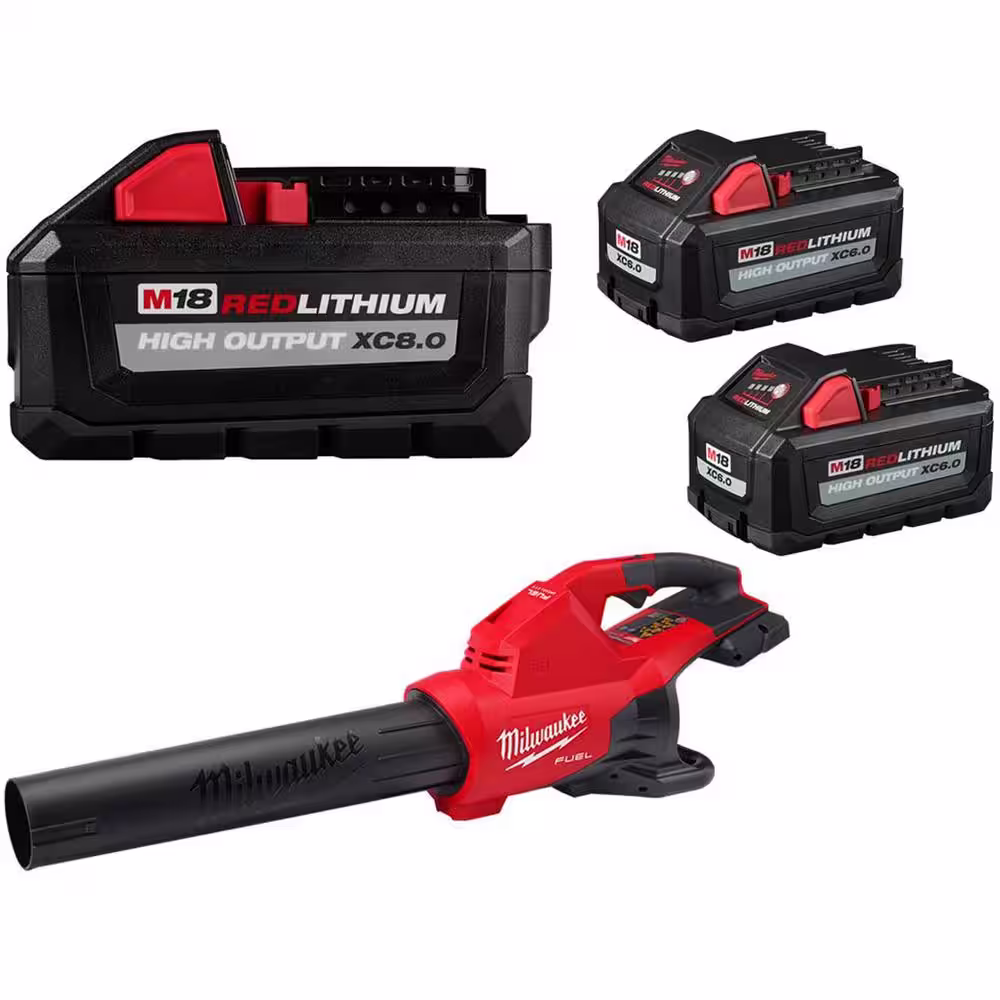 Milwaukee M18 18-Volt Lithium-Ion HIGH OUTPUT XC 8.0 Ah Battery with Dual Battery Blower and (2) 6.0 Ah Batteries