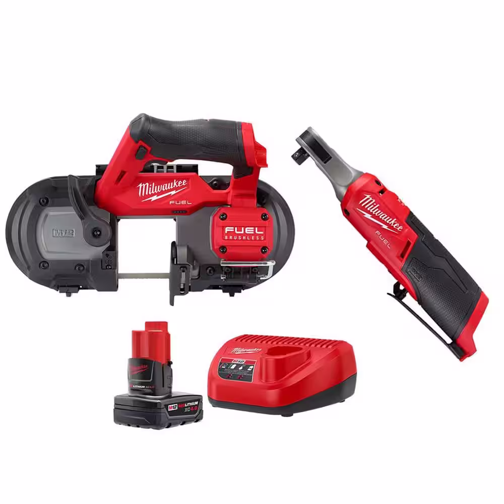 Milwaukee M12 FUEL 12-Volt Lithium-Ion Cordless Compact Band Saw and M12 FUEL High Speed 3/8 in. Ratchet with Battery and Charger
