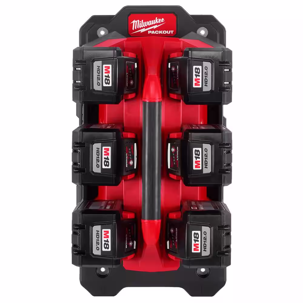 Milwaukee M18 18V Lithium-Ion PACKOUT 6-Port Rapid Charger w/Mounting Plate & (6) 12.0 Ah Batteries