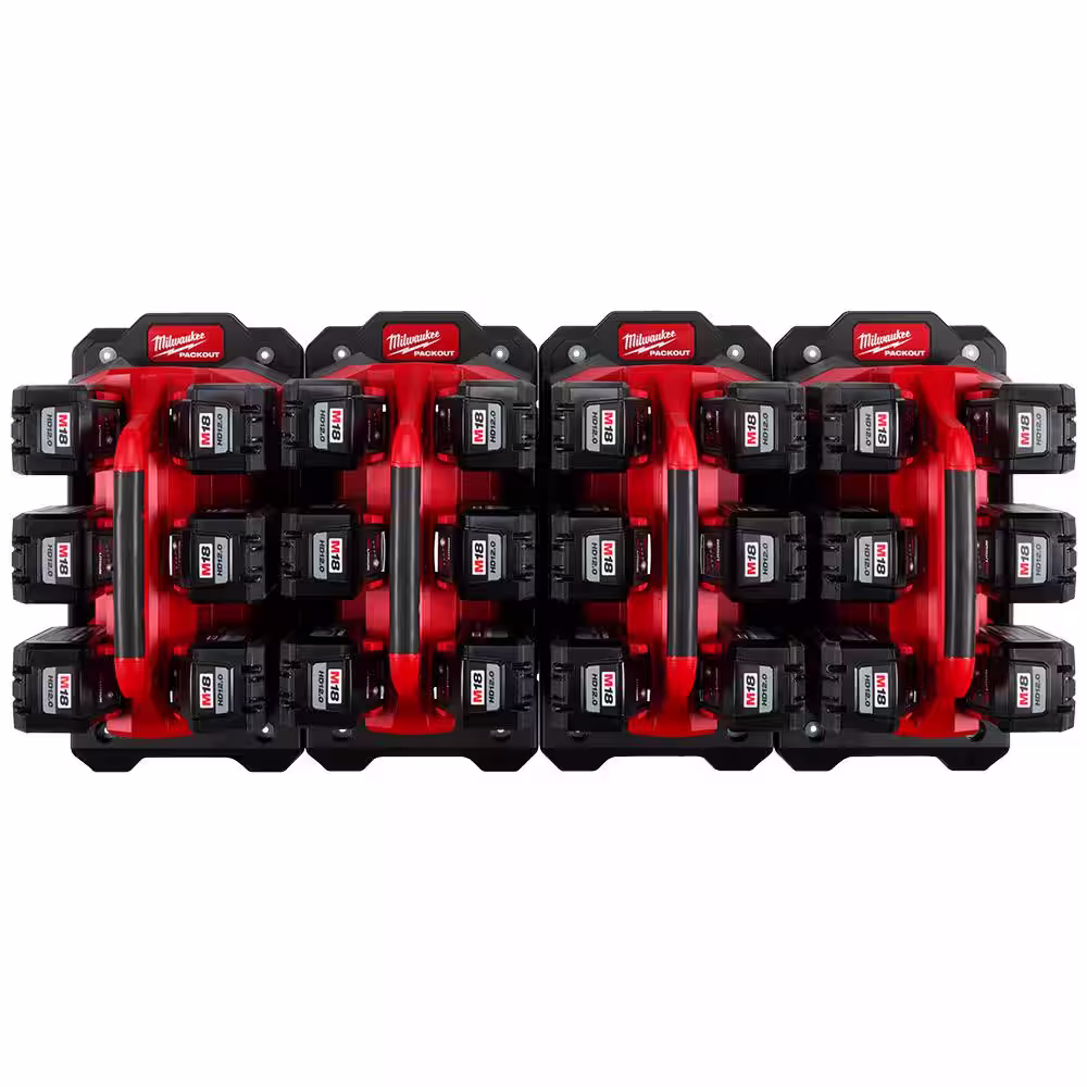 Milwaukee M18 18V Lithium-Ion PACKOUT 6-Port Rapid Charger (4) w/(4) Mounting Plates & (24) 12.0 Ah Batteries