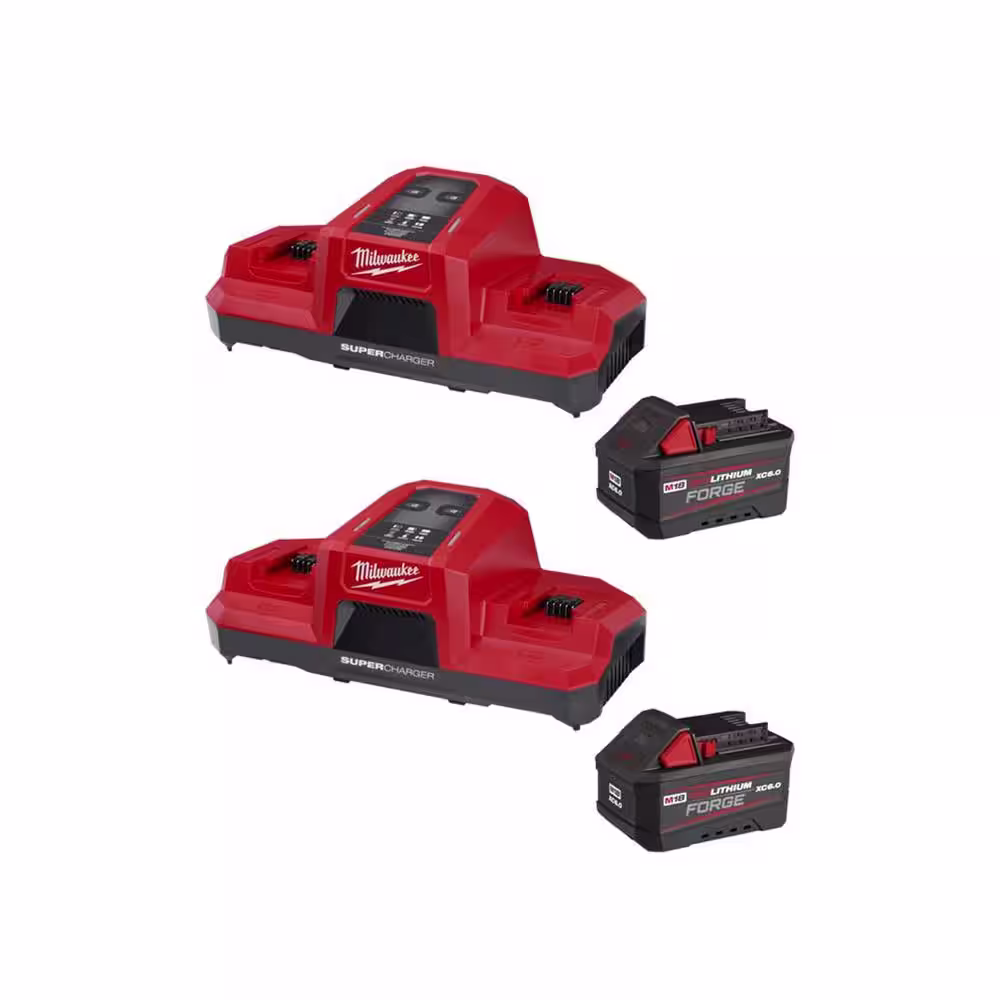 Milwaukee M18 18-Volt Lithium-Ion HIGH OUTPUT Starter Kit with REDLITHIUM FORGE 6.0Ah Battery and Rapid Charger (2-Pack)