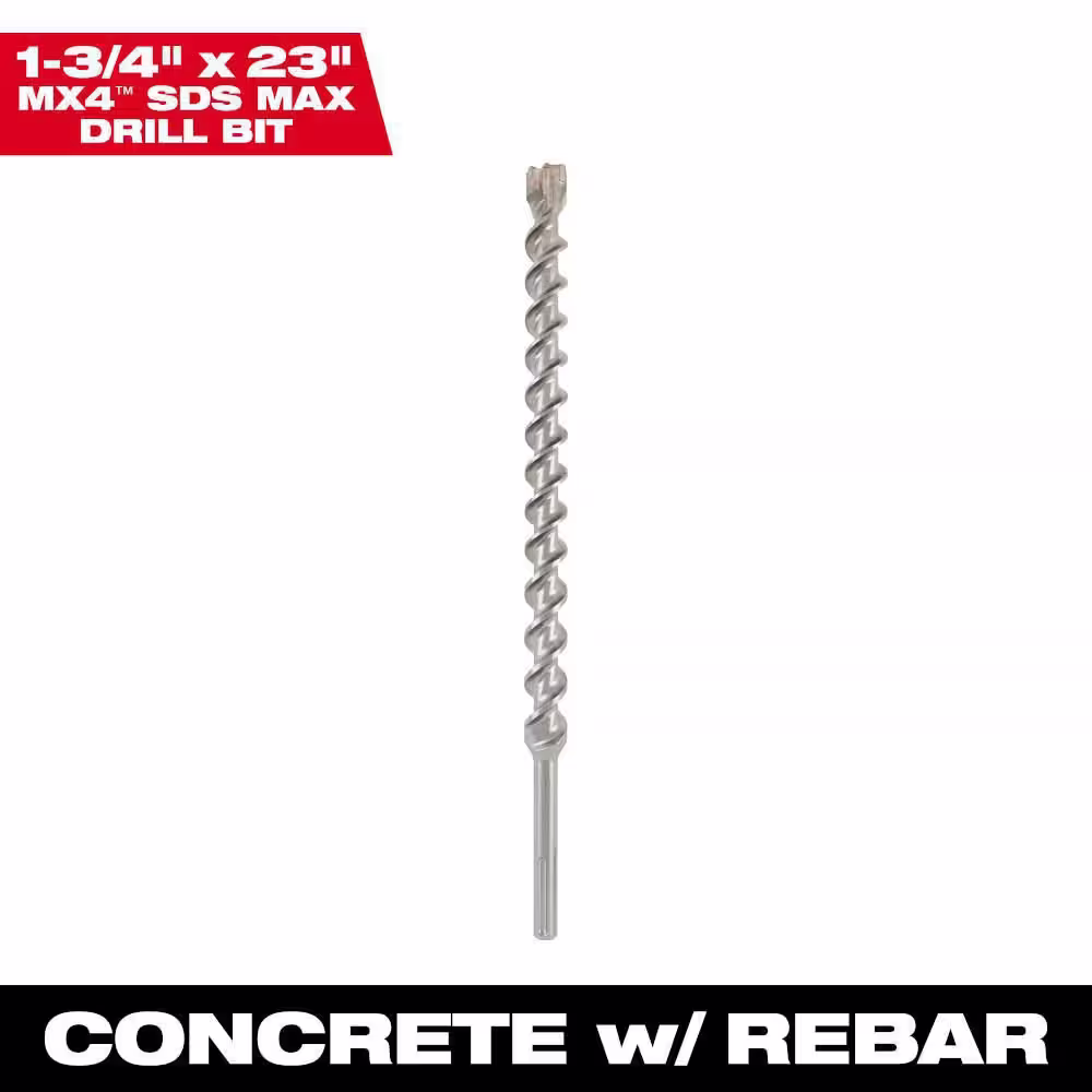 Milwaukee 1-3/4 in. x 23 in. 4-Cutter SDS-MAX Carbide Drill Bit