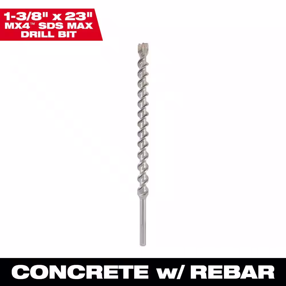 Milwaukee 1-3/8 in. x 23 in. 4-Cutter SDS-MAX Carbide Drill Bit