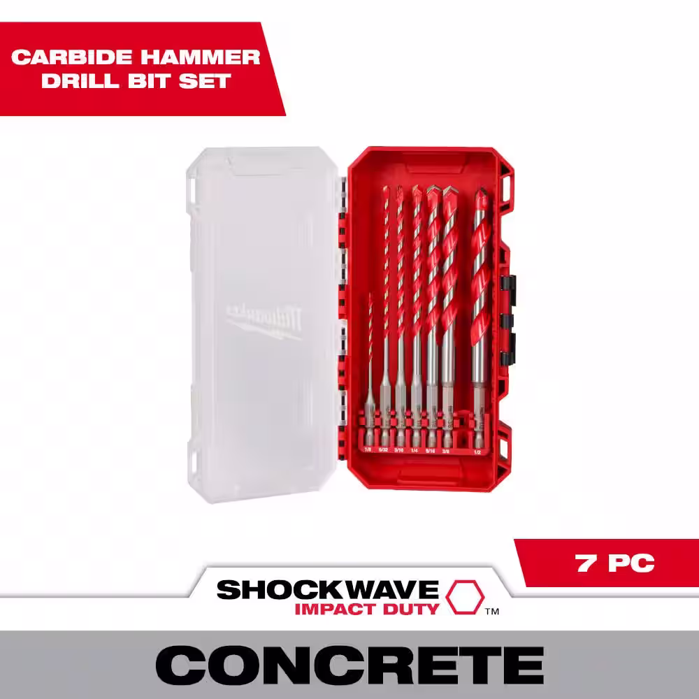 Milwaukee SHOCKWAVE Carbide Hammer Drill Bit Kit (7-Piece) for Concrete, Stone, Masonry Drilling