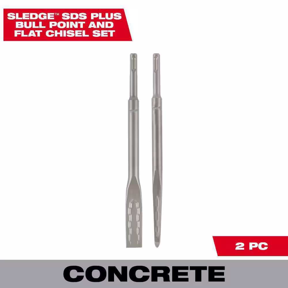 Milwaukee SLEDGE SDS-PLUS Bull Point and Flat Chisel Set (2-Pack)