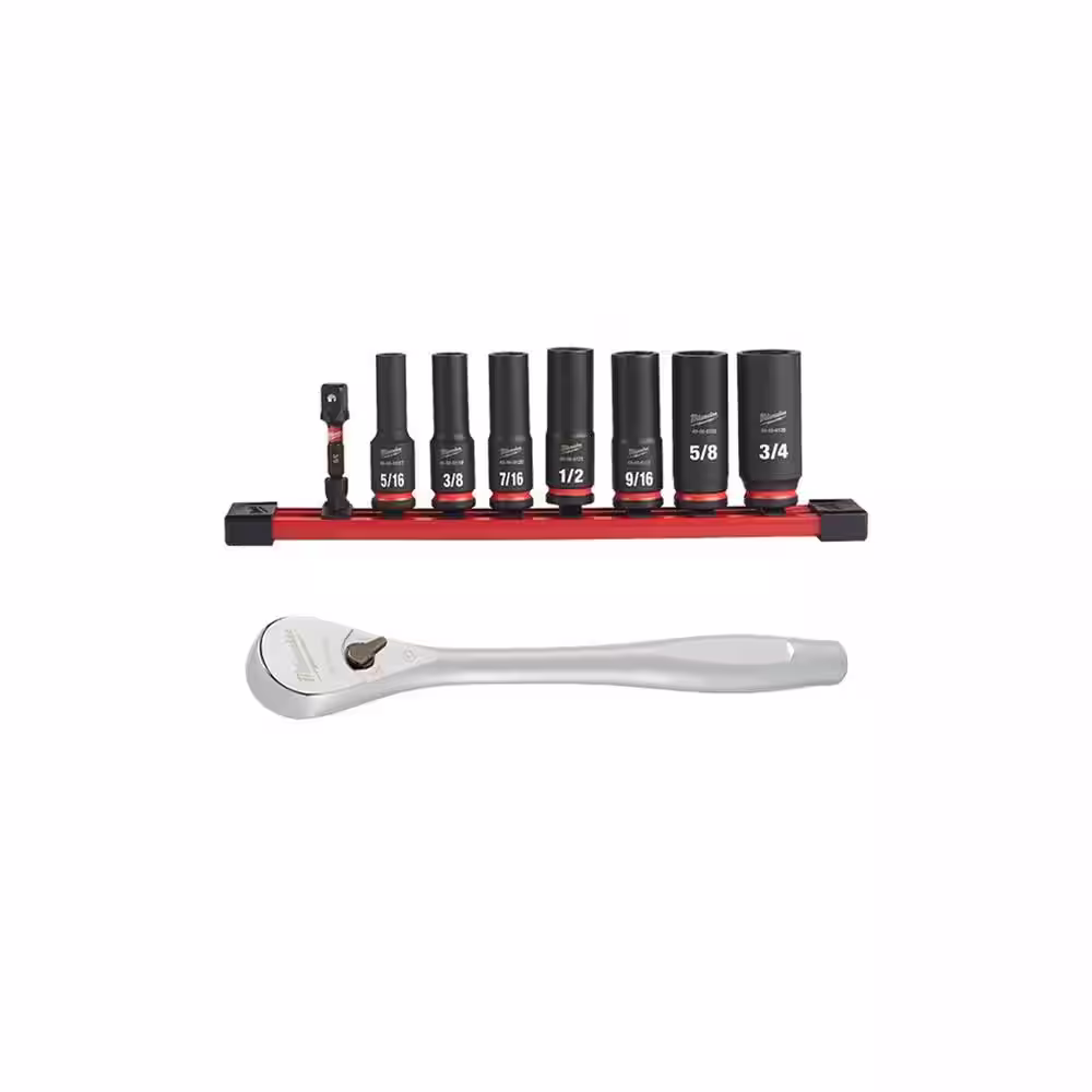 Milwaukee 1/2 in. Drive Ratchet and SHOCKWAVE 1/2 in. Drive SAE Deep Well Impact Socket Set (13-Piece)