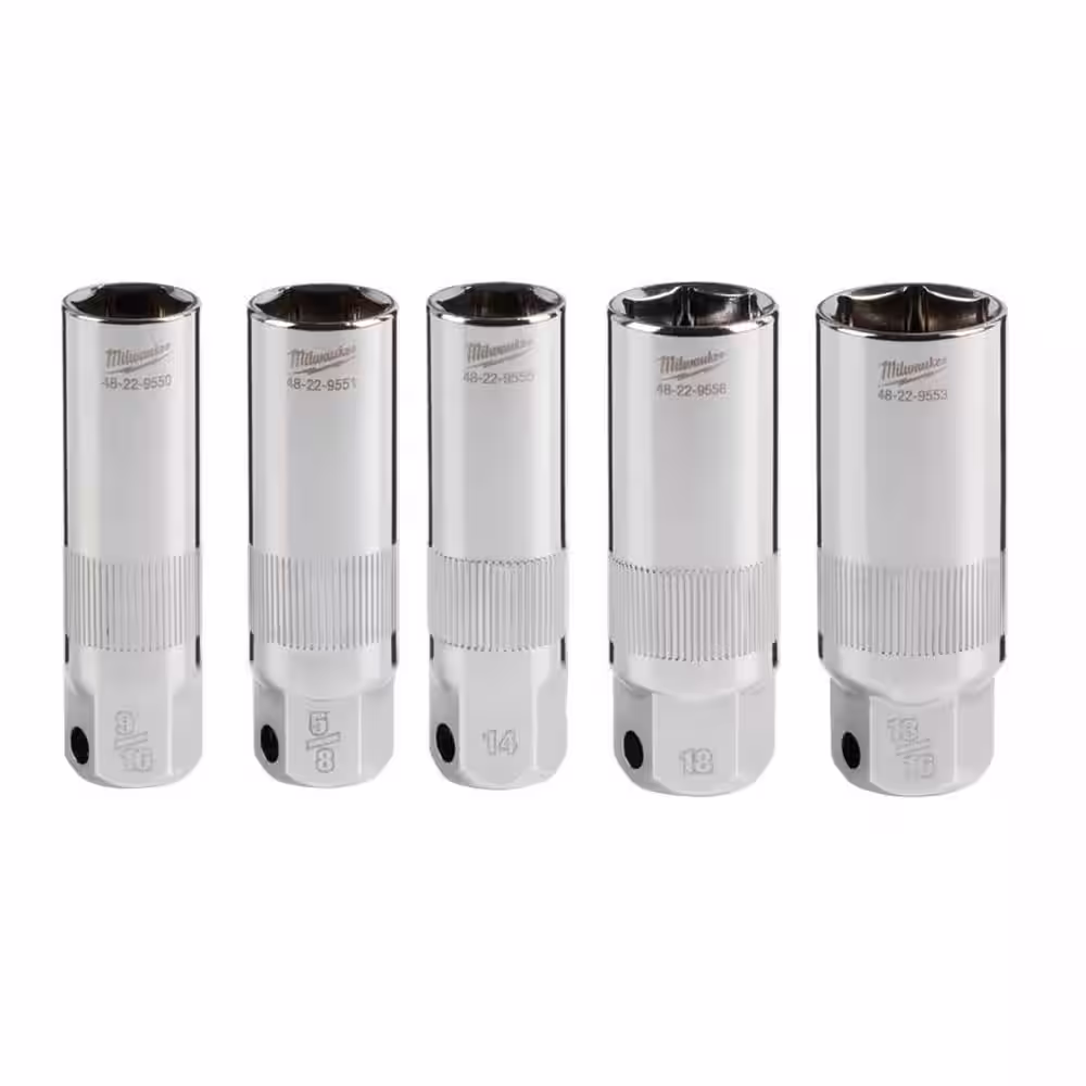 Milwaukee 3/8 in. Drive 9/16 in., 5/8 in., 13/16 in., 14 mm, and 18 mm Spark Plug Socket Set (5-Piece)