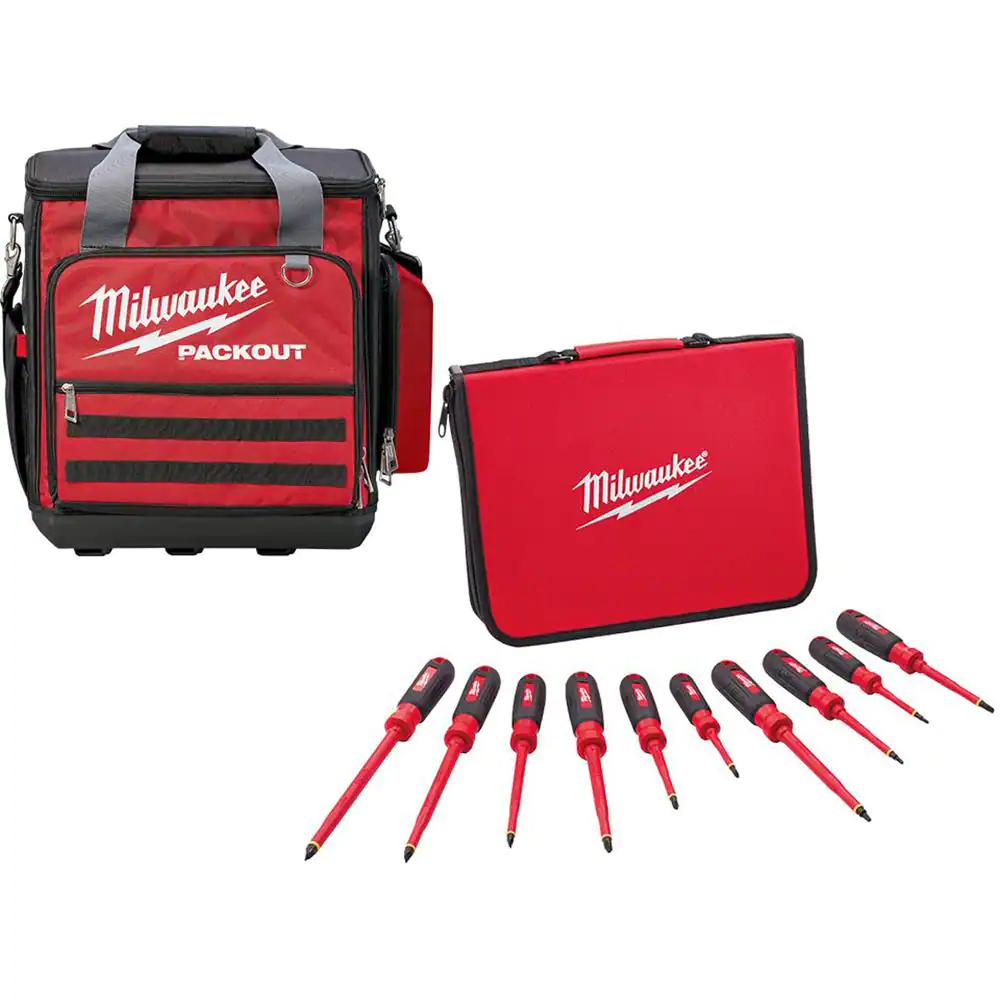 Milwaukee 10-Piece 1000-Volt Insulated Screwdriver Set and Case with 11 in. PACKOUT Tech Tool Bag