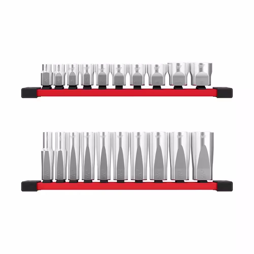 Milwaukee 3/8 in. SAE Low Profile and Deep Well 6-Point Sockets with FOUR FLAT Sides (20-Piece)