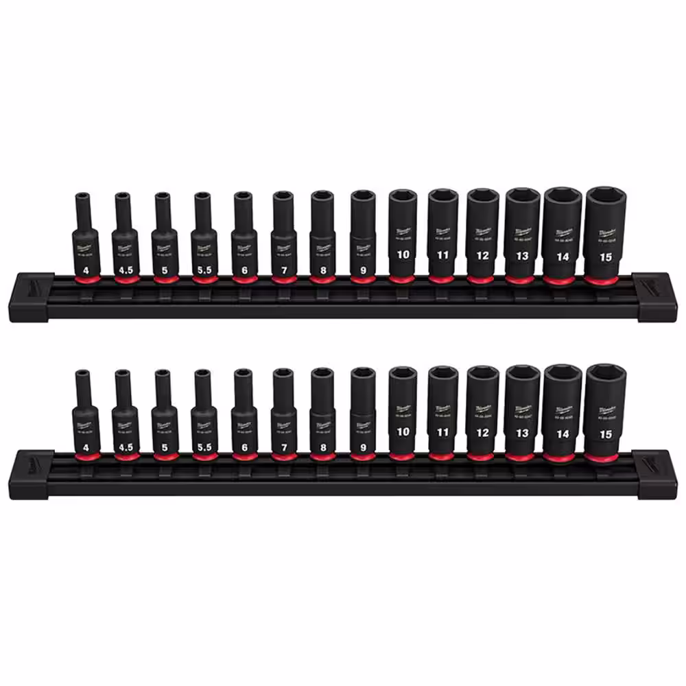Milwaukee SHOCKWAVE 1/4 in. Drive Metric Deep Well 6-Point Impact Socket Set (28-Piece)