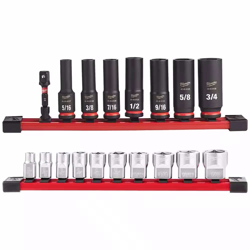 Milwaukee SHOCKWAVE Impact Duty 1/2 in. Drive SAE Deep Well Impact Socket Set (18-Piece)