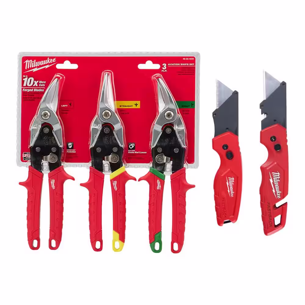 Milwaukee Left, Right and Straight Aviation Snips with Utility Knife's (5-Pack)