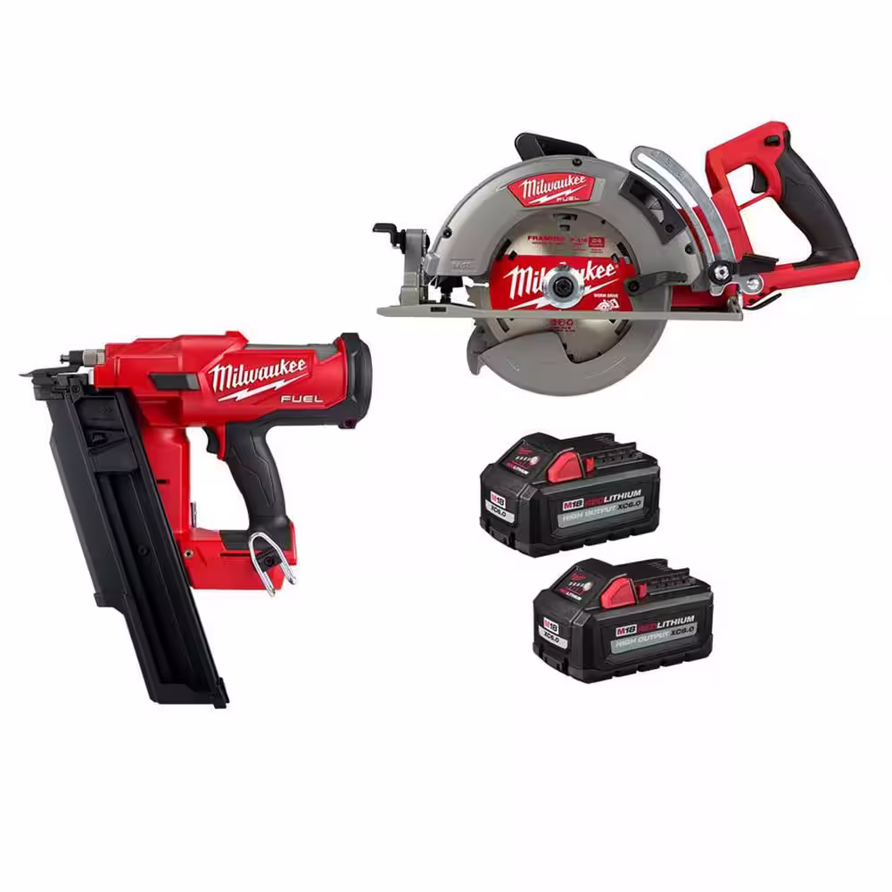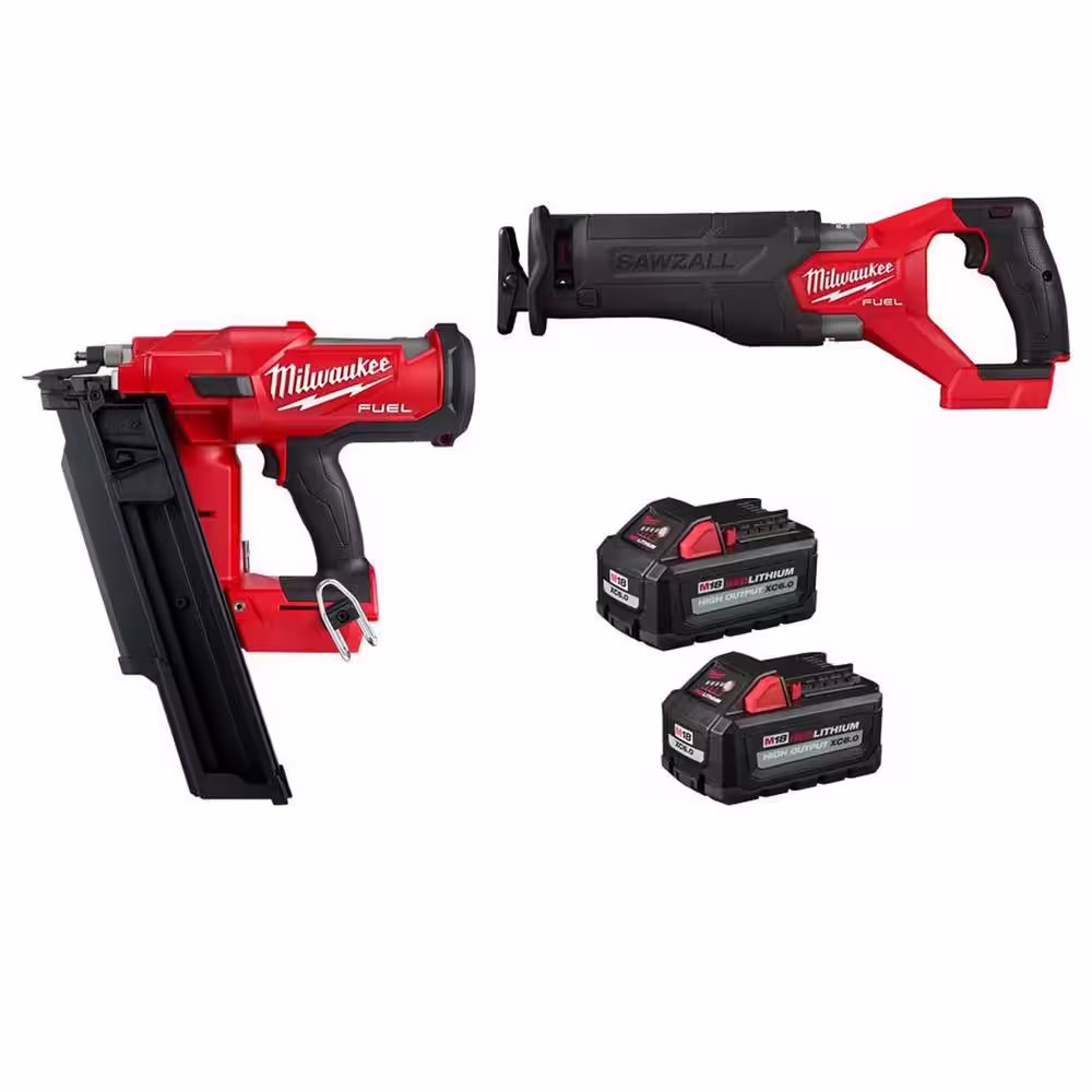 Milwaukee M18 FUEL 3-1/2 in. 18-Volt 21-Degree Lithium-Ion Brushless Cordless Nailer w/SAWZALL, Two 6Ah HO Batteries (2-Tool)