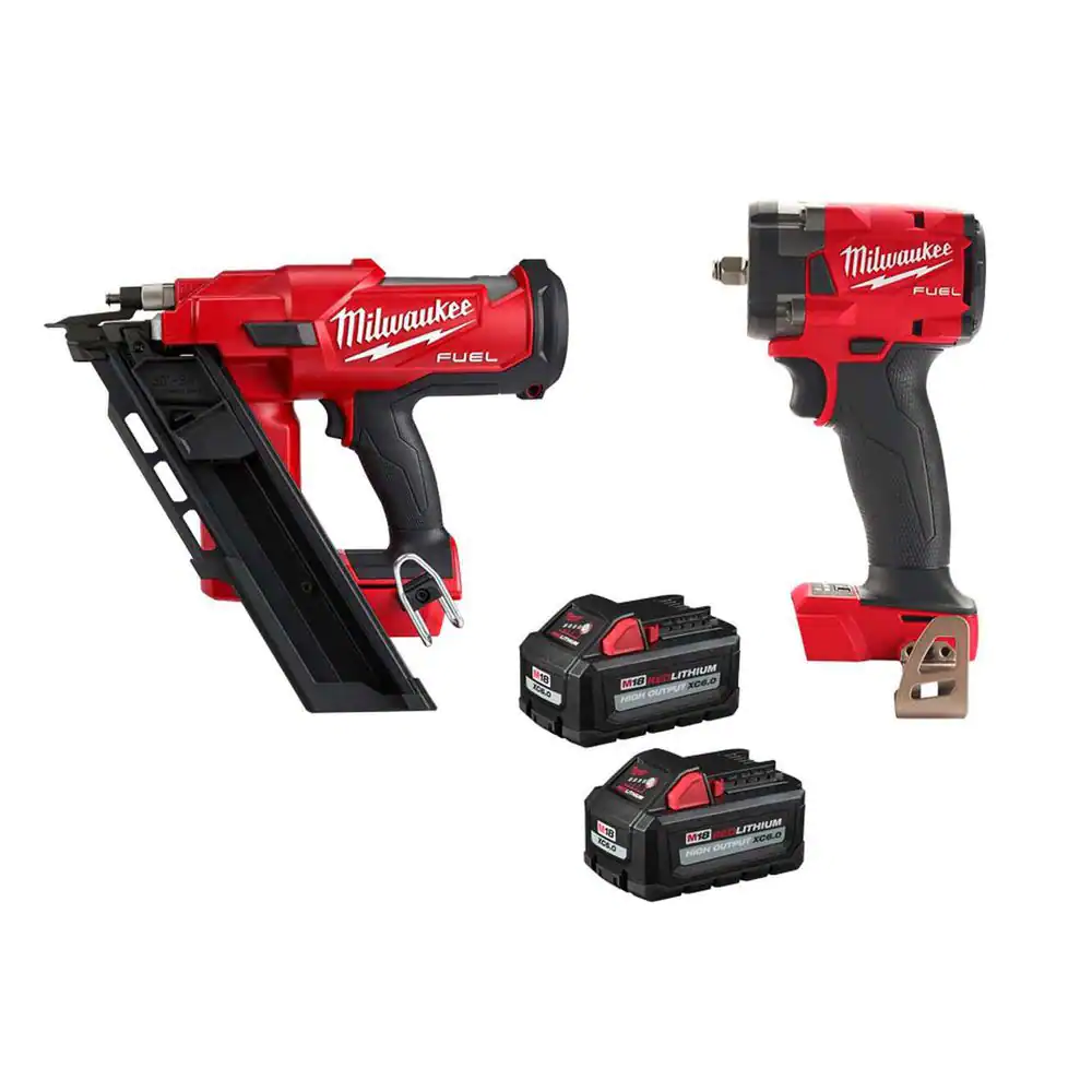 Milwaukee M18 FUEL 3-1/2 in. 18-Volt 21-Degree Lithium-Ion Brushless Cordless Nailer w/3/8 in. Impact w/Two 6Ah HO Batteries