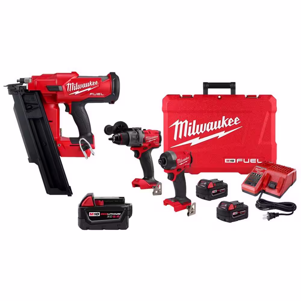 Milwaukee M18 3-1/2 in 21-Degree Cordless Nailer,M18 FUEL Hammer Drill & Impact Driver Combo Kit w/ 2 Batteries,M18 2.0 Ah Battery