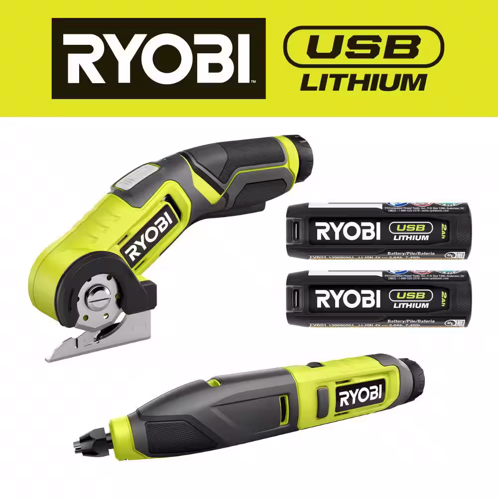 RYOBI USB Lithium 2-Tool Combo Kit with Power Cutter, Power Carver, (2) Batteries, and (2) USB Charging Cables