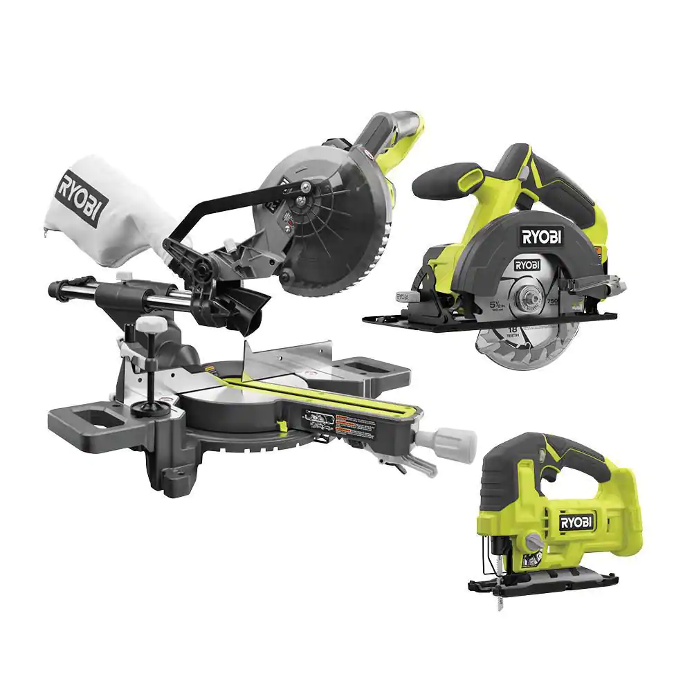 RYOBI ONE+ 18V Cordless 3-Tool Combo Kit with 7-1/4 in. Miter Saw, Jig Saw, and 5-1/2 in. Circular Saw (Tools Only)