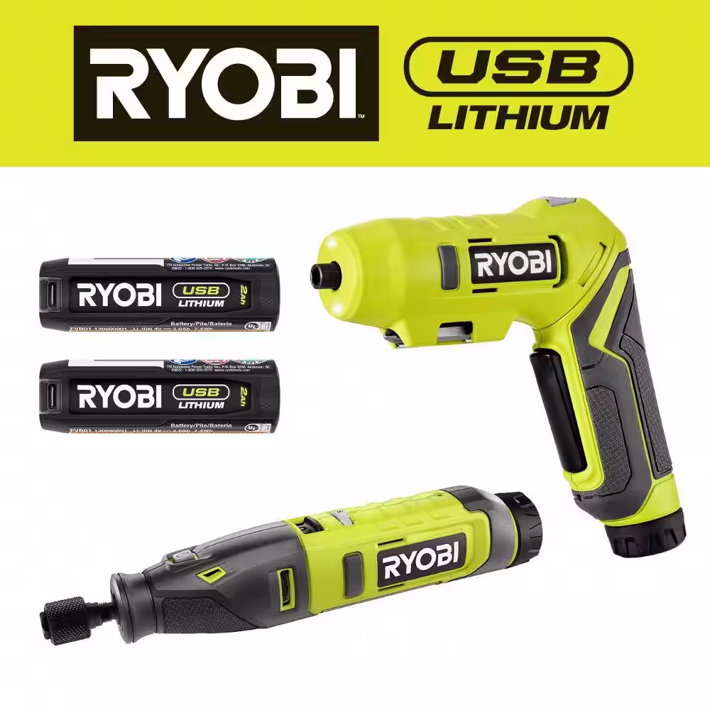 RYOBI USB Lithium 2-Tool Combo Kit with Screwdriver, Rotary Tool, (2) Batteries, and (2) USB Charging Cables