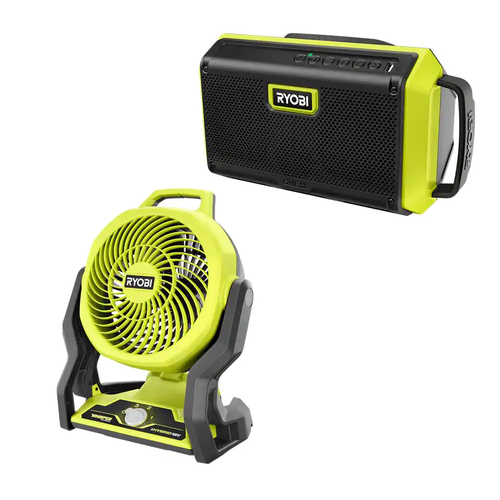 RYOBI ONE+ 18V Cordless 2-Tool Combo Kit with Speaker with Bluetooth Wireless Technology and Hybrid Portable Fan (Tools Only)