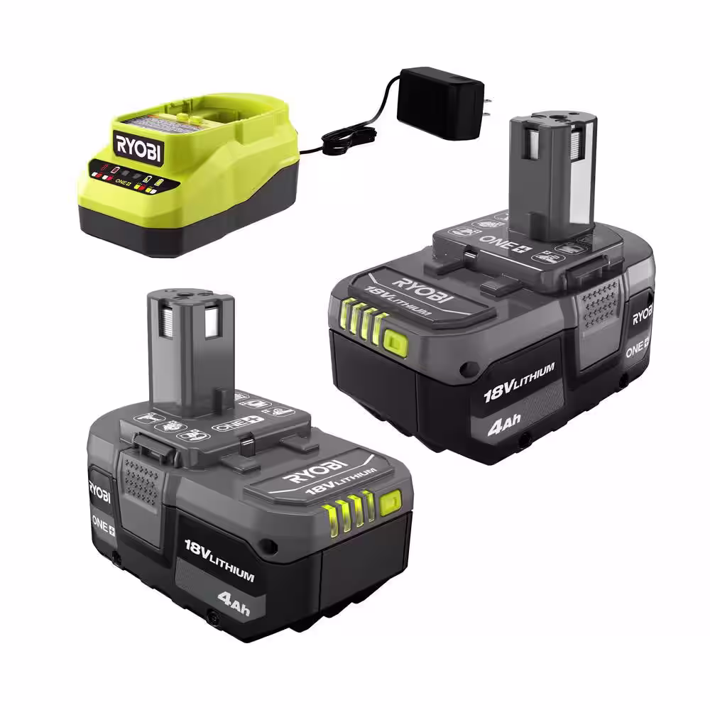 RYOBI ONE+ 18V Lithium-Ion 4.0 Ah Battery (2-Pack) and Charger Kit