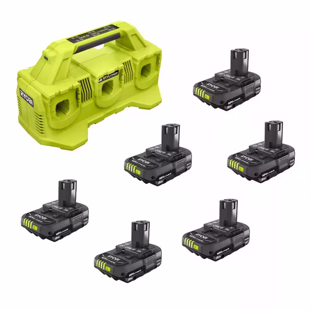 RYOBI ONE+ 18V Lithium-Ion 2.0 Ah Compact Battery (6-Pack) with 6-Port Charger