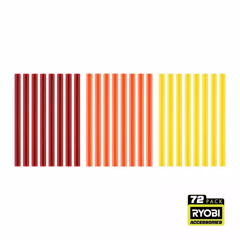 RYOBI 72PC Mini Size Color Glue Sticks (Red, Orange, Yellow)
