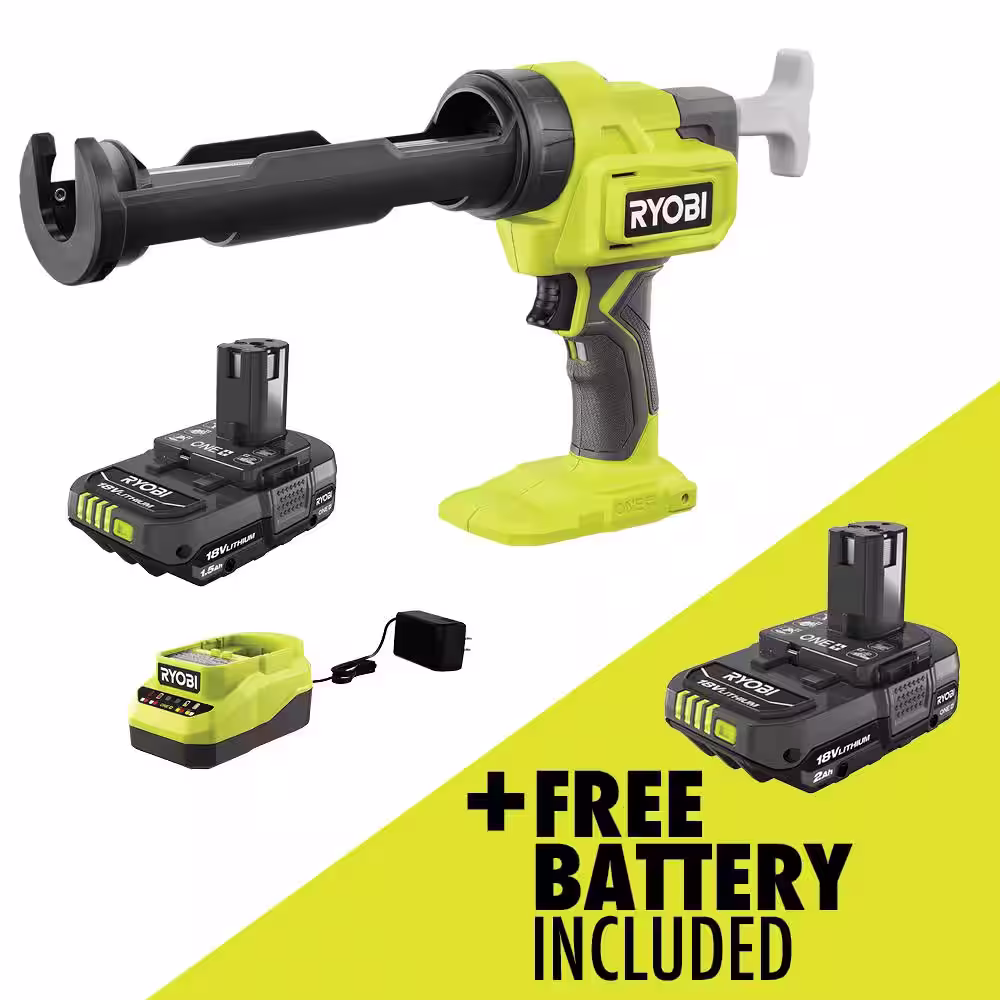 RYOBI ONE+ 18V Cordless 10 oz. Caulk & Adhesive Gun Kit with 1.5 Ah Battery and Charger with FREE 2.0 Ah Battery