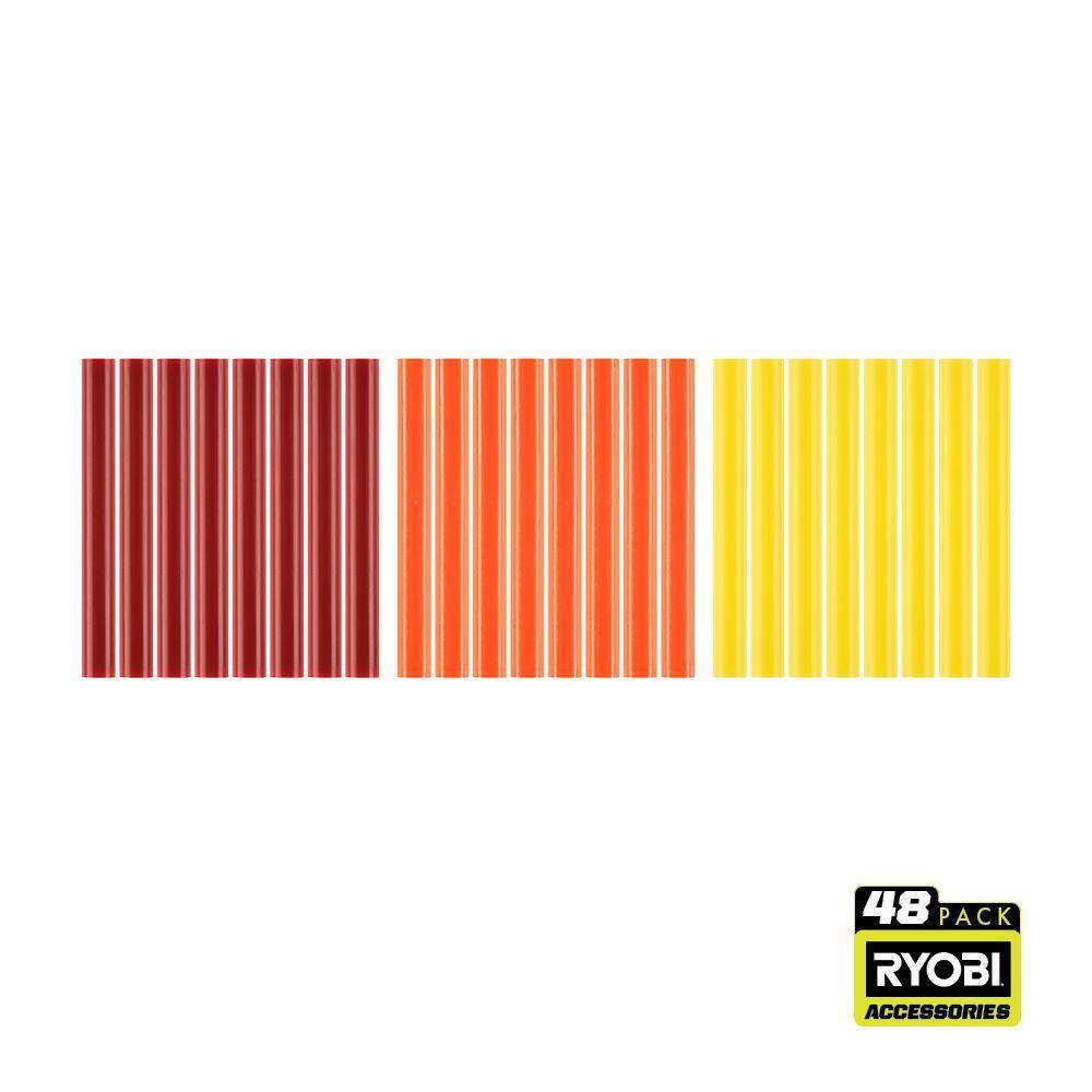 RYOBI 48PC Full Size Color Glue Sticks (Red, Orange, Yellow)