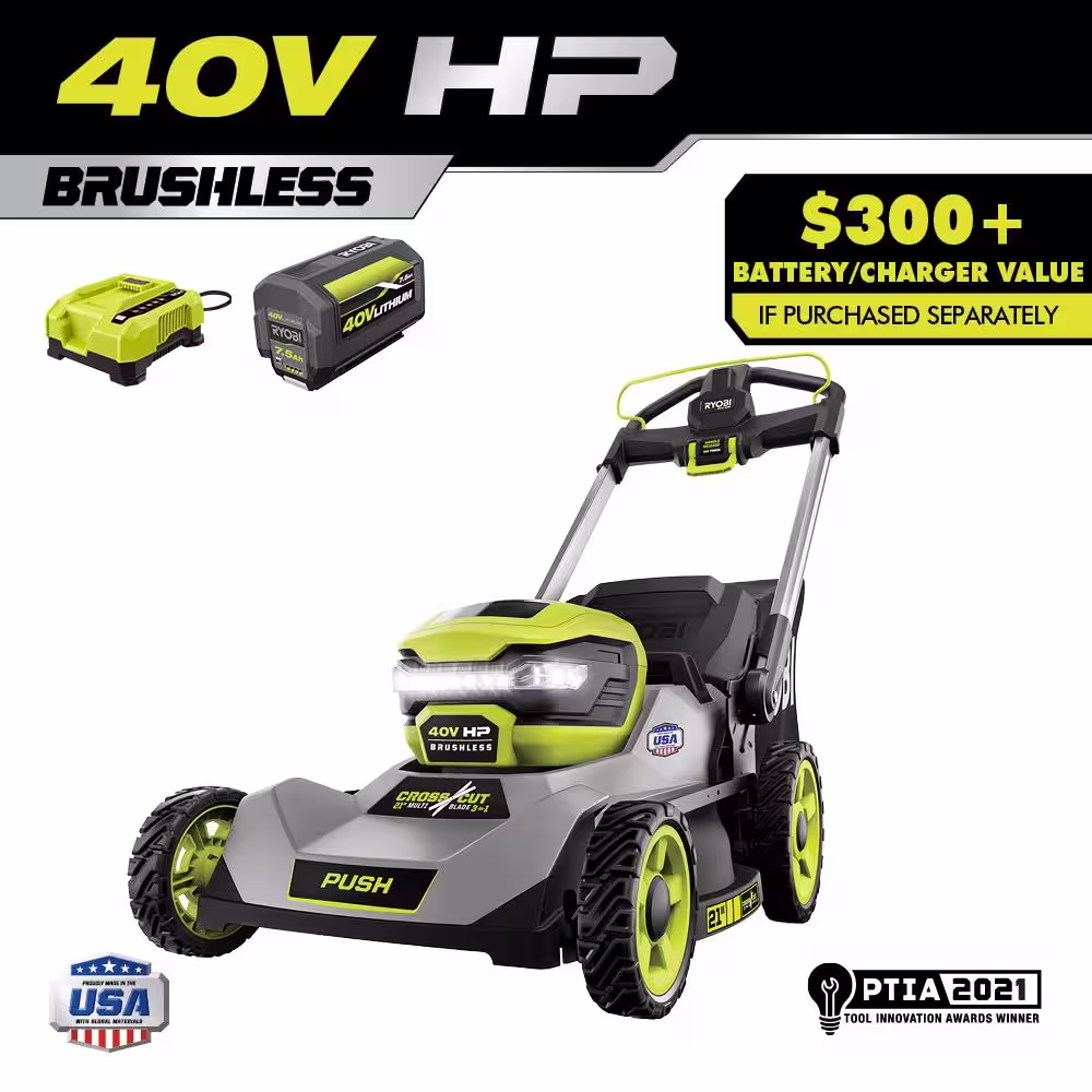 RYOBI 40V HP Brushless 21 in. Battery Walk Behind Multi-Blade Push Lawn Mower with 7.5 Ah Battery and Rapid Charger