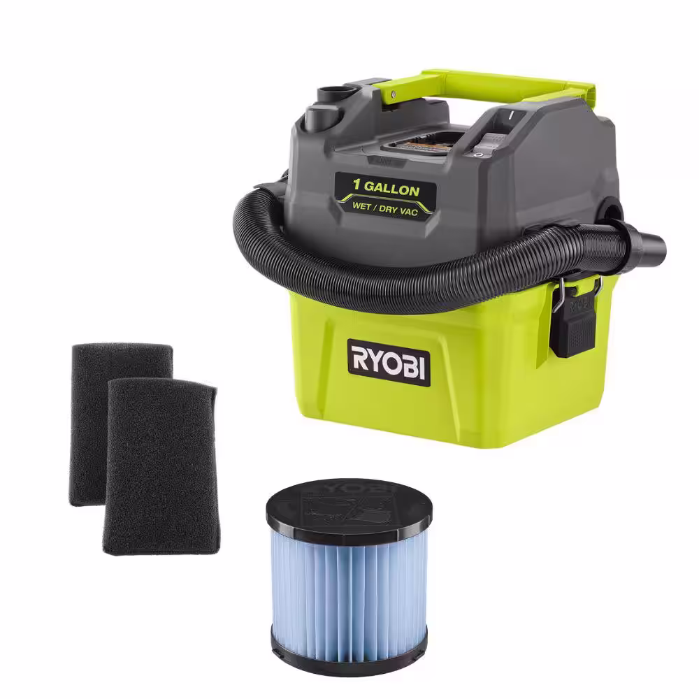 RYOBI ONE+ 18V Cordless 1 Gal. Wet/Dry Vacuum (Tool Only) with HEPA Filter for Small Wet Dry Vacuums and Foam Filter (2-Pack)