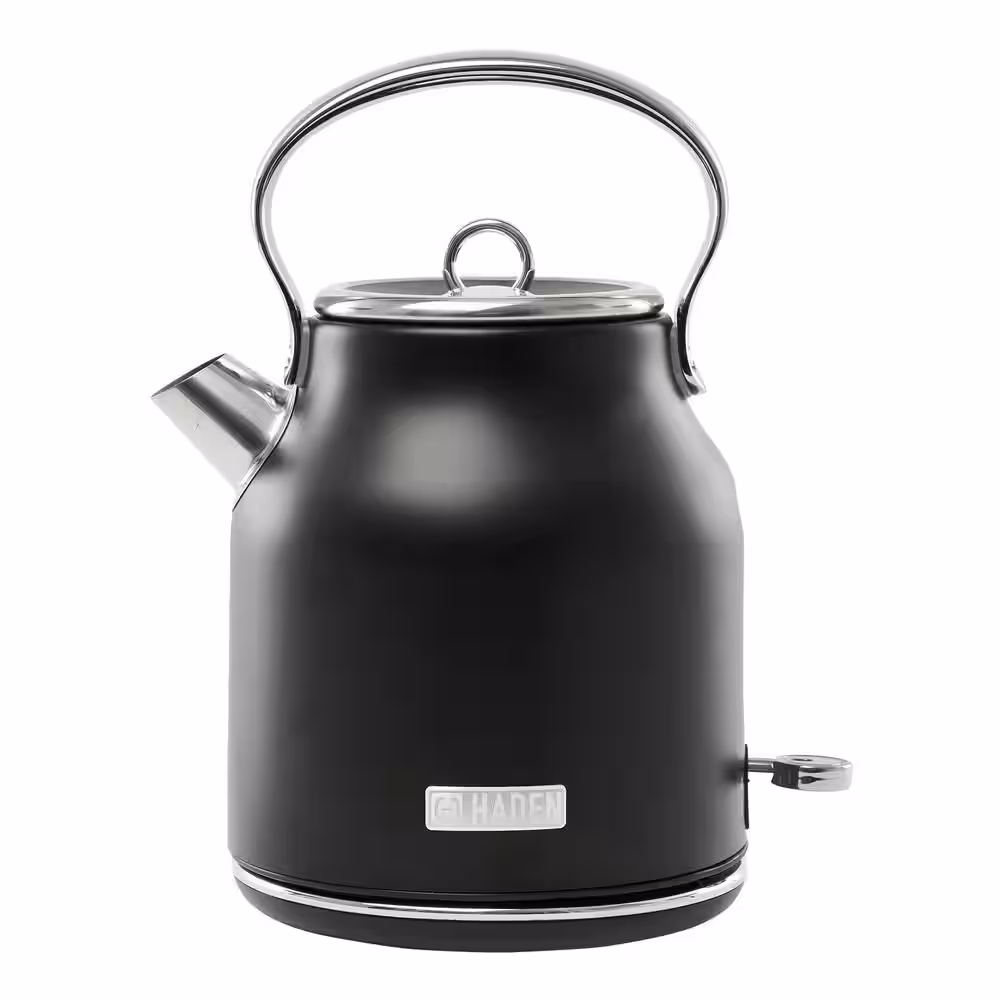 HADEN Heritage 1.7 l 7-Cup Black and Chrome Cordless Stainless Steel Retro Electric Kettle with Auto Shut-Off