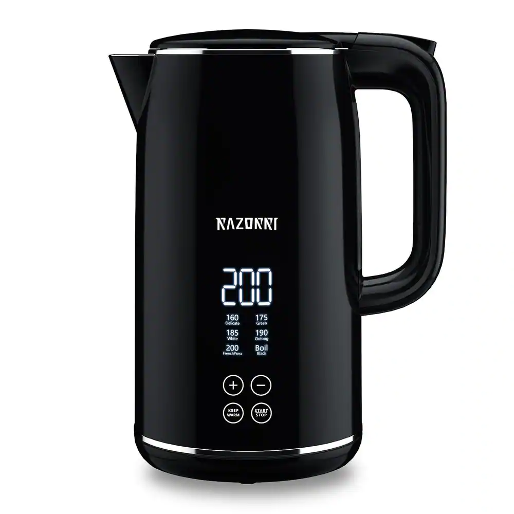 Razorri Premio 9-Cups Black Stainless Steel Interior Cordless Electric Kettle with BPA Free Exterior Smart Control