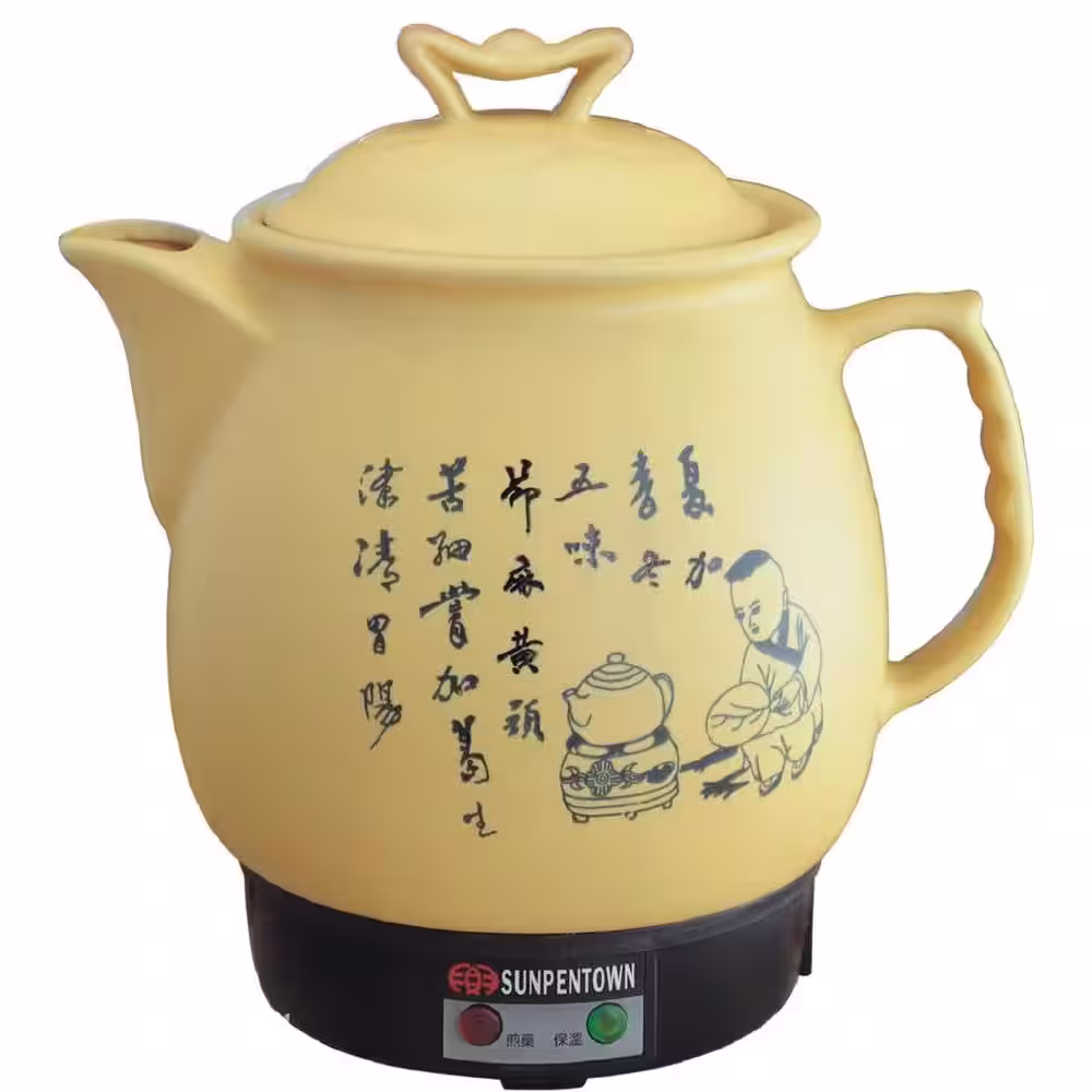 SPT 14.3-Cup Brown Ceramic Electric Kettle with Herb Cooking and Keep Warm Setting