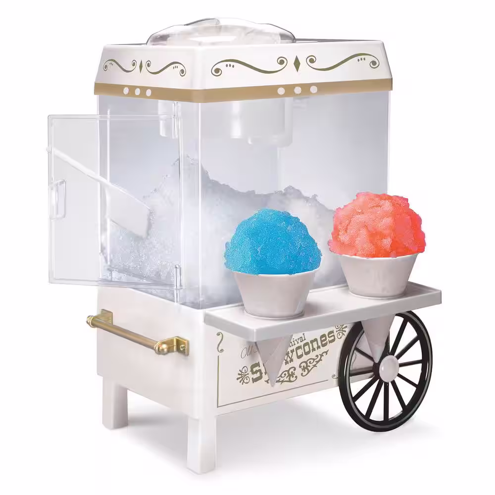 Nostalgia 160 oz. White Snow Cone Machine with 2 Cones and Ice Scoop
