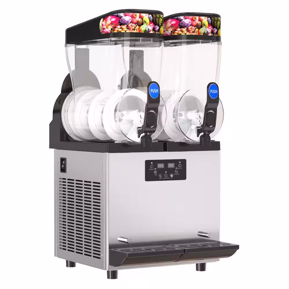 Phivve 844 oz. Silver Commercial Slushy Machine 950W 12L x 2 Tanks Frozen Drink Machine PC Double Tank Snow Cone Machine