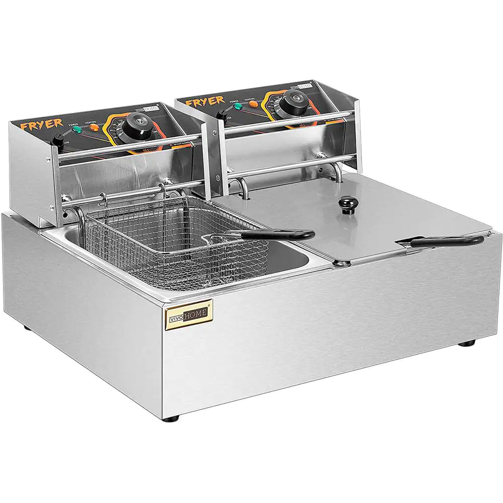 VIVOHOME 20.7 Qt. Stainless Steel Electric Deep Fryer with 2 6.35 Qt. Removable Baskets and Temperature Limiter