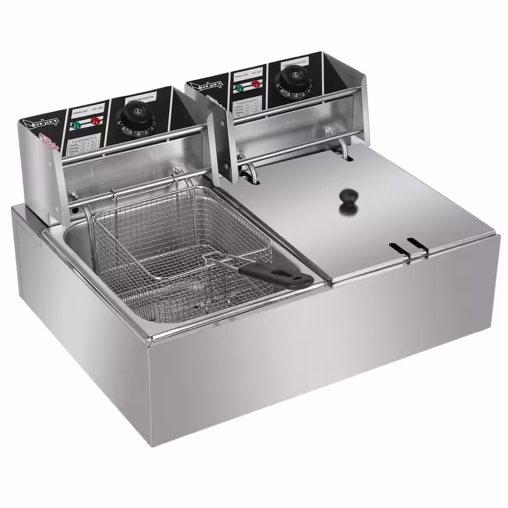 None 12.7 qt. Stainless Steel Electric Deep Fryer with Double Tanks
