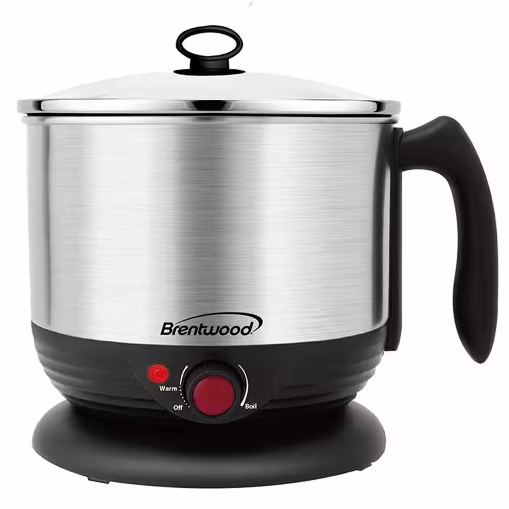 Brentwood Stainless Steel 1.3 qt. Cordless Electric Hot Pot Slow Cooker and Food Steamer in Black