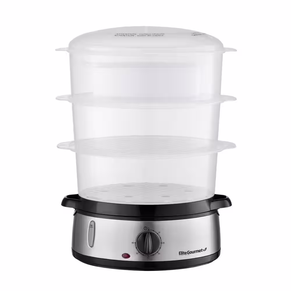 Elite Gourmet Gourmet 9 qt. 3-Tier Black Plastic Food Steamer