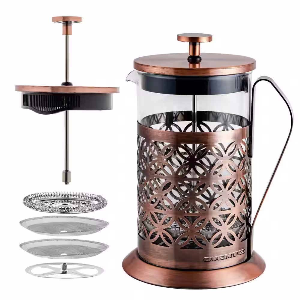 OVENTE 3-Cup Copper French Press Coffee Maker with 4 Level Mesh Filter